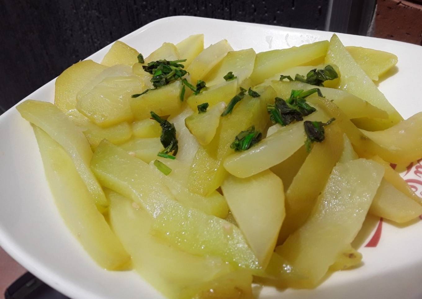Guatila / chayote / yota con aceite de oliva y ajo..