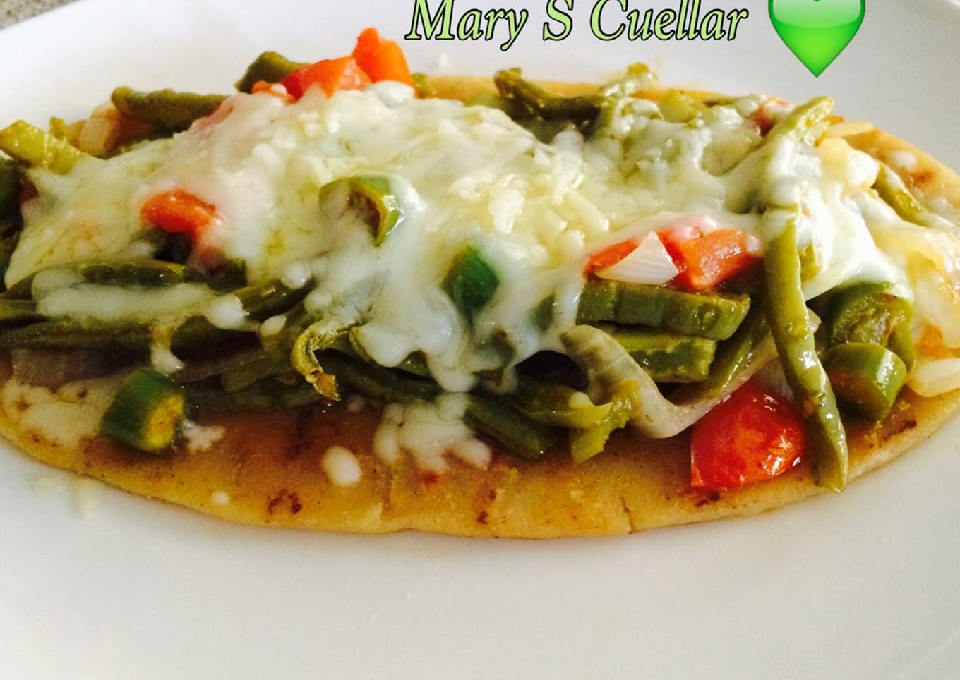 - Dora la tortillita o guarache en el comal con poco aceite y ya doradito le pone sus nopalitos y su quesiti oaxaca y listo probecho.. Yummii👌🏻👌🏻Enjoy😋😋