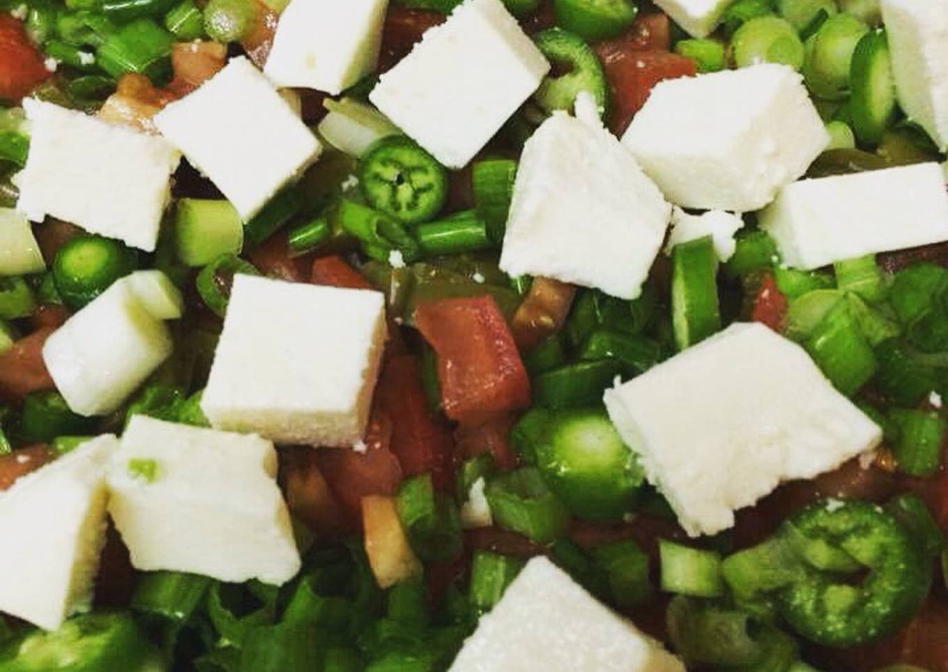 - La cebolla de verdeo se limpia, lava y pica en rodajas finas, se agrega al los nopales.