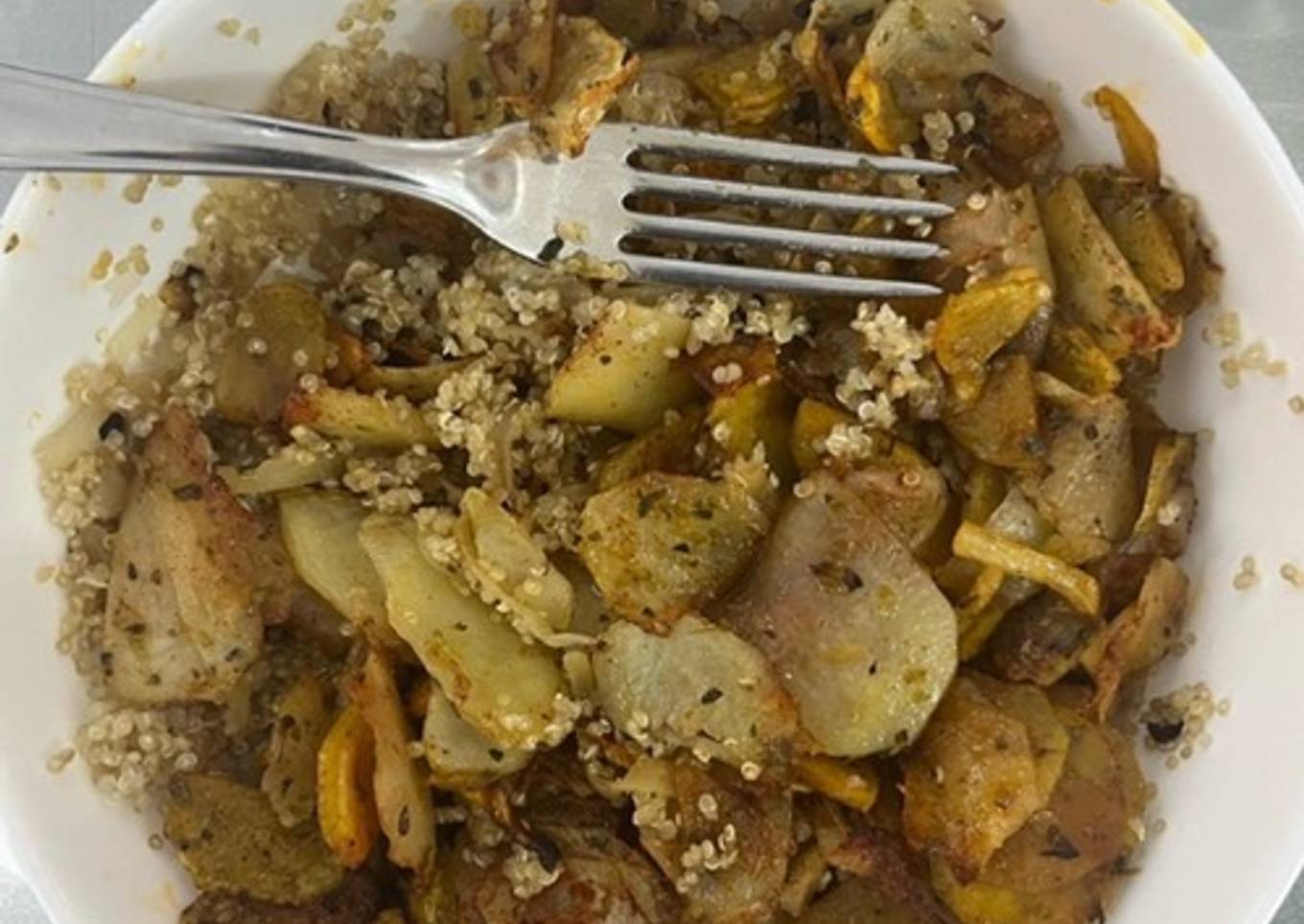 Hello everybody, it's Drew, welcome to my recipe page. Today, we're going to make a distinctive dish, Quinoa con papas y batatas. One of my favorites. For mine, I will make it a little bit tasty. This will be really delicious.