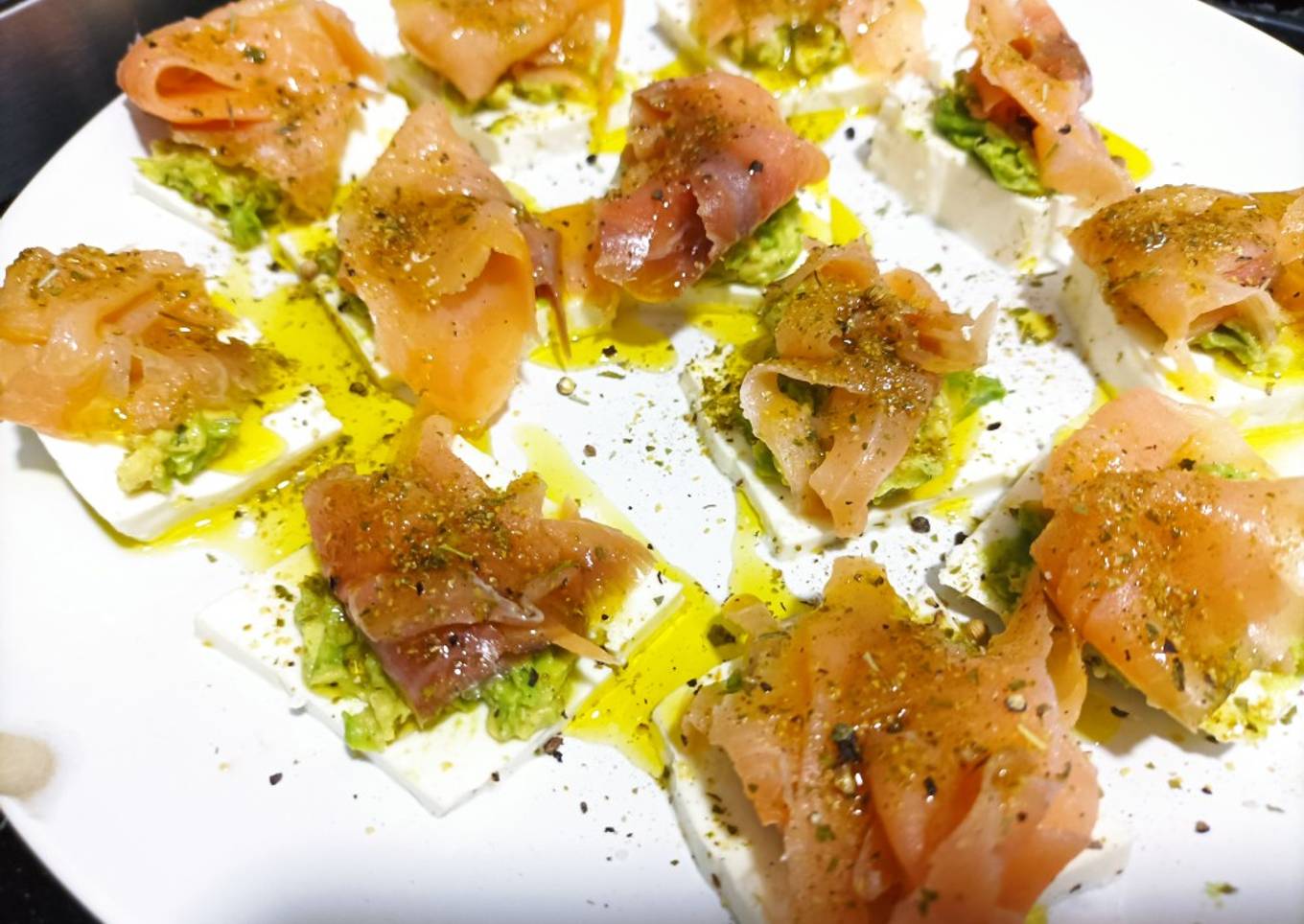 Minibocaditos de salmón, queso fresco y aguacate