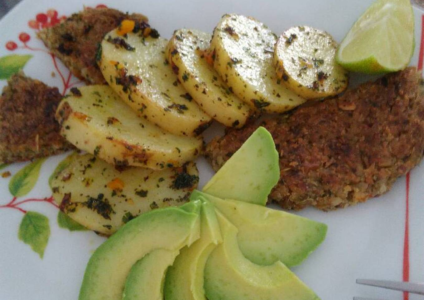 La receta la inventé hoy. Abrí la nevera y fue lo que encontré. La hamburguesa es vegana de soya y almendras, no soy vegana ni vegetariana pero me gusta cocinar y comer lo más saludable posible. Siempre trato de agregar aguacate a mis platos es súper delicioso y tiene muchas propiedades.