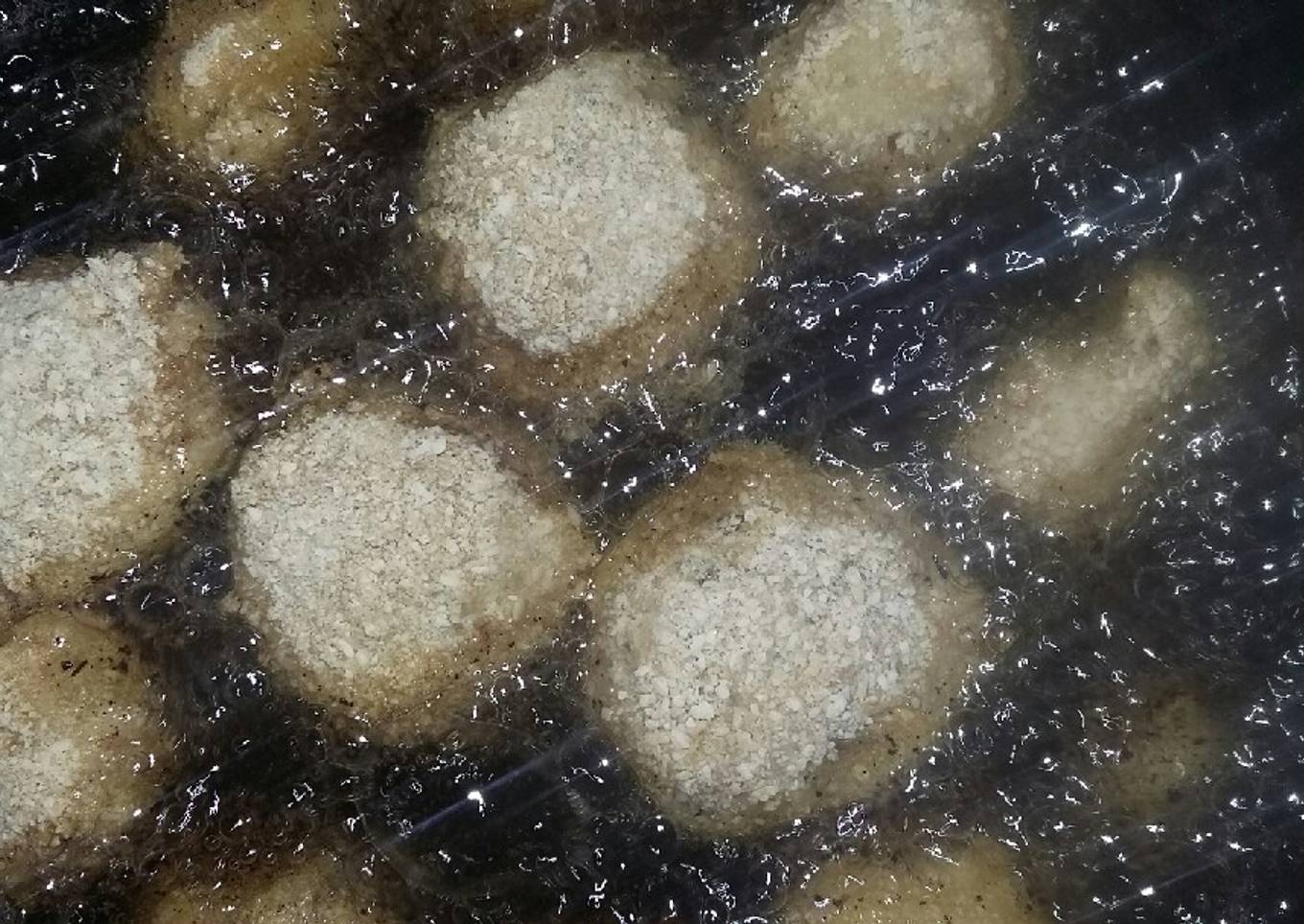 - Cortar queso en cubitos y armar las bombitas con un cubito en el centro.