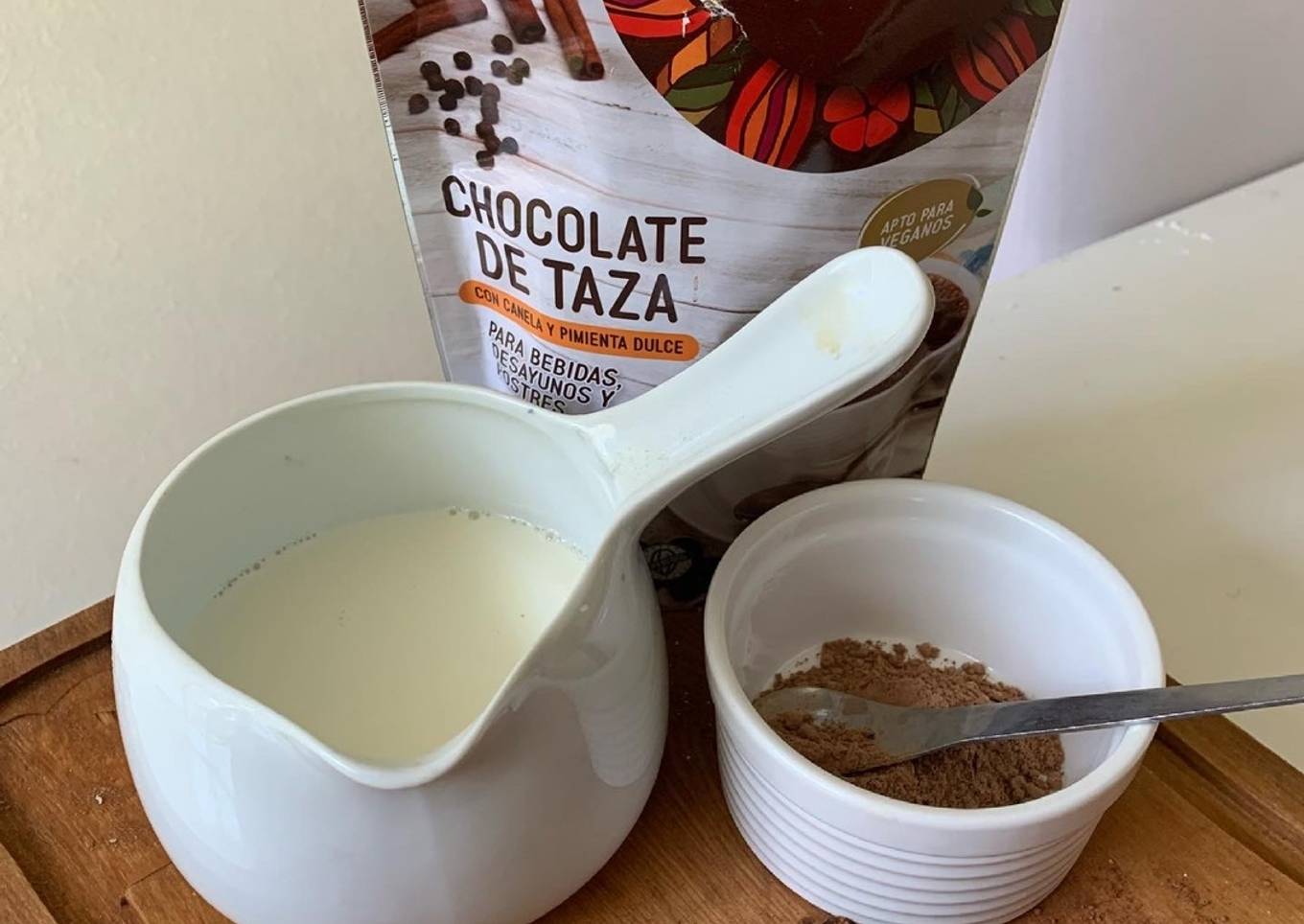 Steps to make to make Chocolate caliente a la Taza