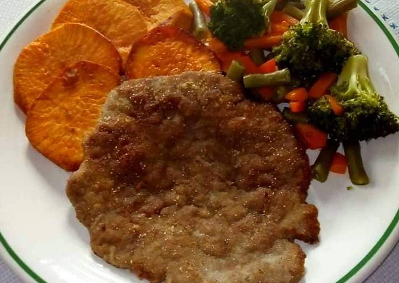 Milanesa con camotes fritos