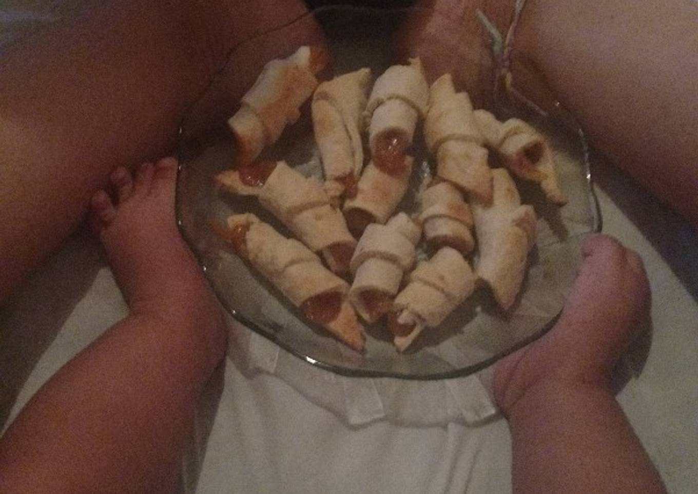 - Mezclar el agua, grasa, sal y harina hasta hacer una masa que pueda estirarse finita estilo pascualina! Estirar la masa y cortar triángulo ponerle una tirita de membrillo o batata.