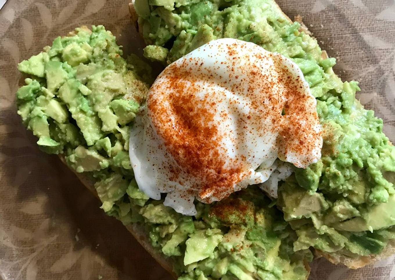 - Pelamos y aplastamos el aguacate, y untamos las tostadas. Colocamos el huevo y espolvoreamos un poco de sal y pimentón al gusto