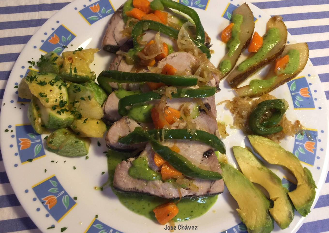 Hey everyone, I hope you are having an incredible day today. Today, we're going to make a special dish, Atún al horno con salteado de verduras y mojo de aguacates. One of my favorites. This time, I will make it a little bit tasty. This will be really delicious.