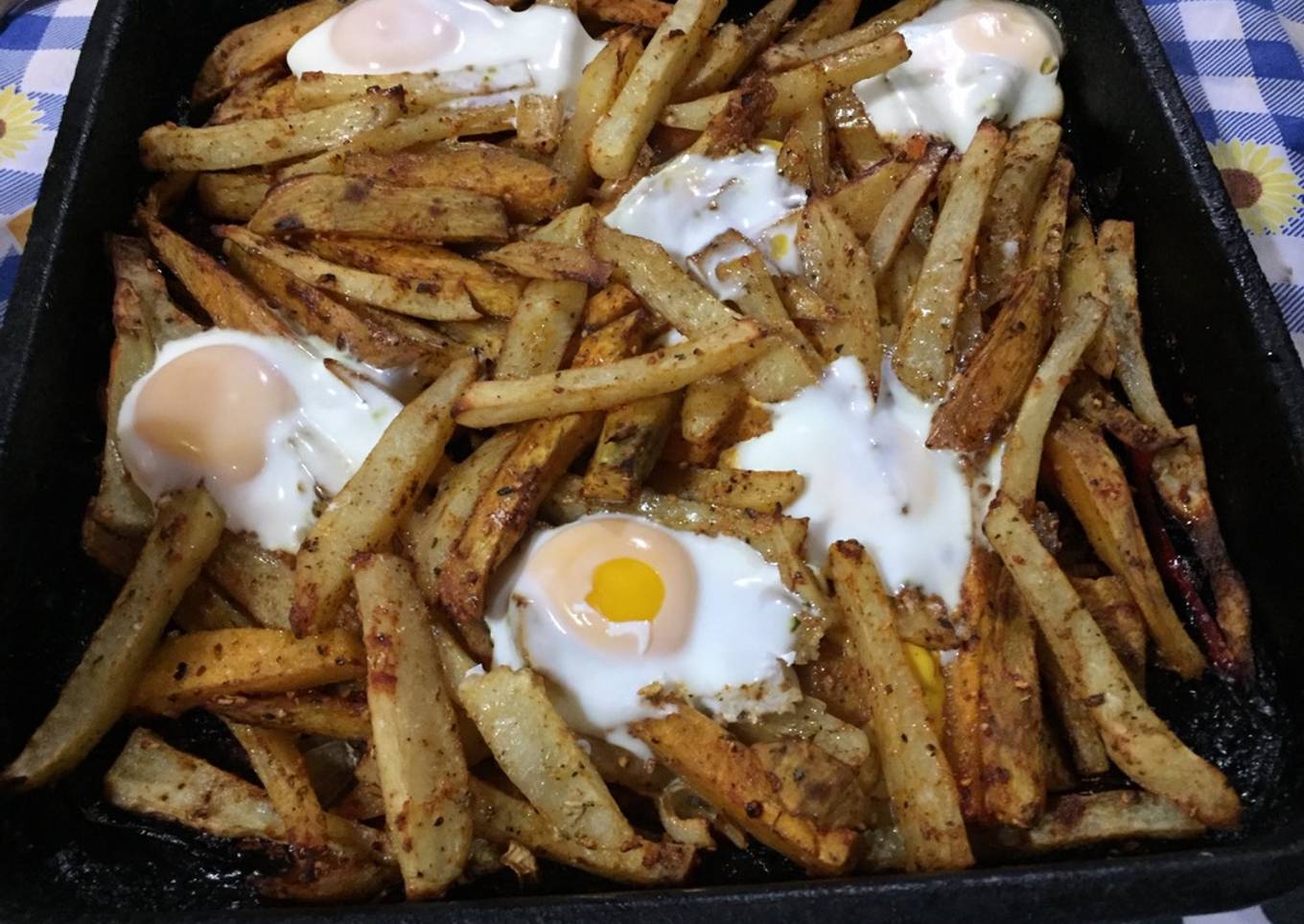 - Cuando ya estén listas romper algunos huevos sobre las papas y cocinar 2 minutos más