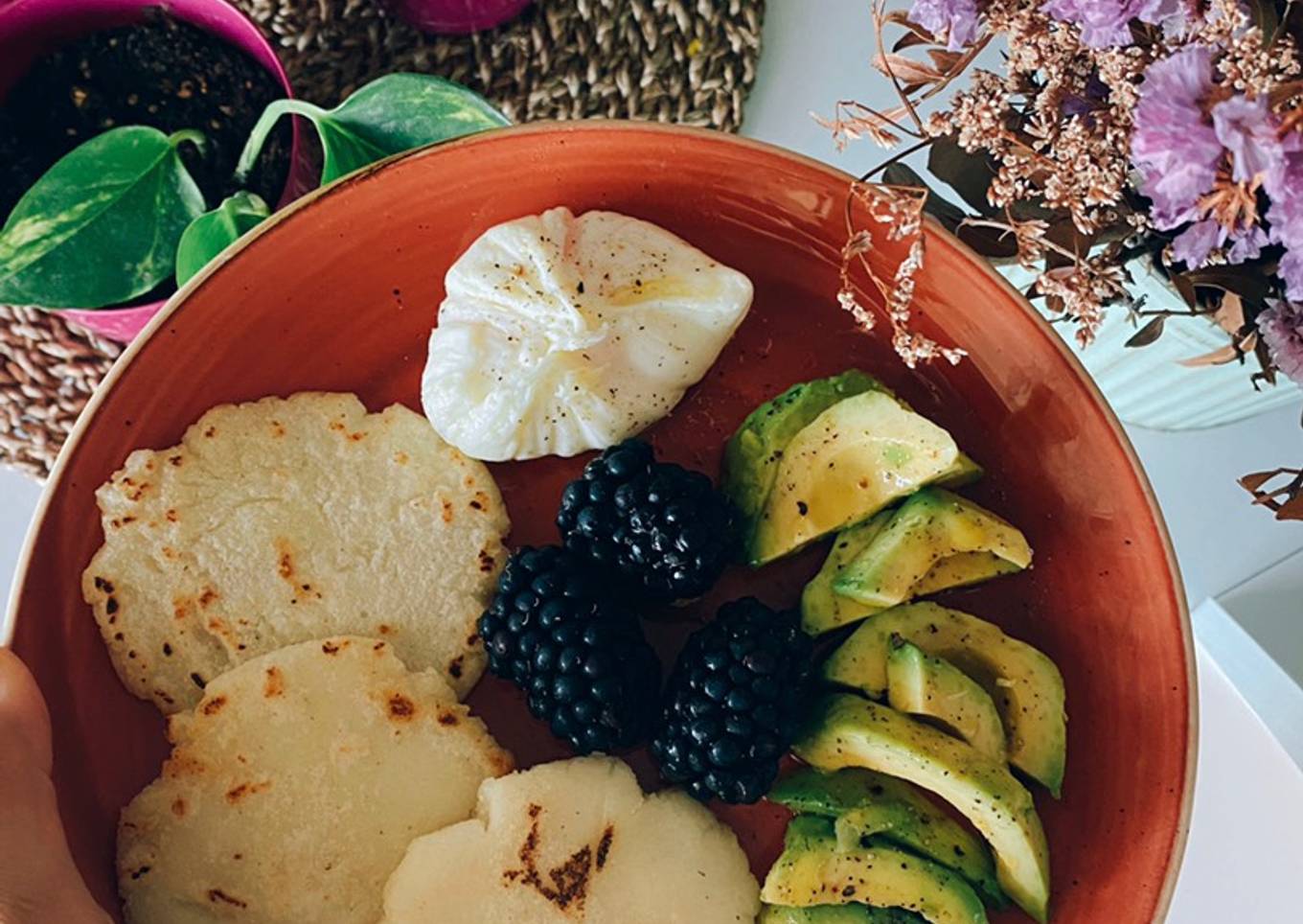Tortillas de maíz con aguacate y huevo poché