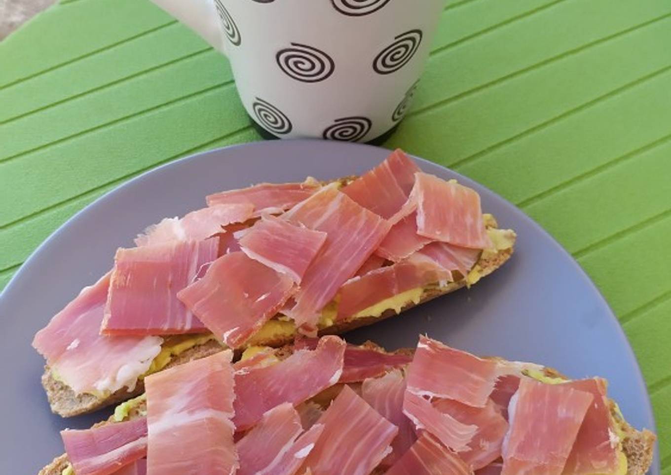 Tostadas de aguacate y jamón