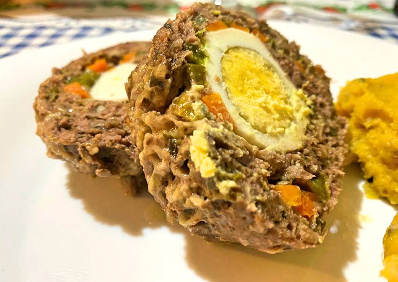 Pan de carne tipo arrollado con puré de batatas cremoso 🥩🍠